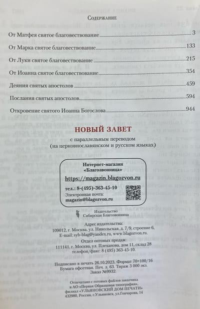 Новый Завет с параллельным переводом на церковнославянском и русском языках