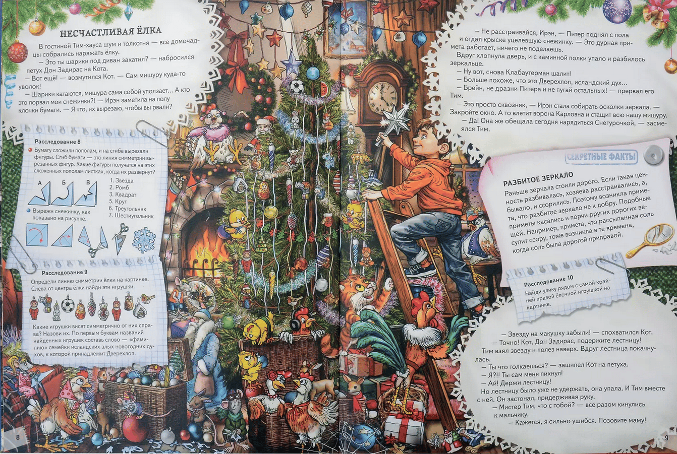 Непростой канун Нового года выдался в Тим-хаусе. Неужели все злые рождественские духи собрались в этом доме, чтобы испортить праздник его обитателям? Это предстоит выяснить крысятам-детективам Питеру, Брейну, Малышу и Ирэн Ратлер. А ты, дорогой читатель, можешь помочь крысятам в этом расследовании, выполнив увлекательные задания и узнав много «Секретных фактов» о новогодних традициях мира.