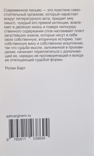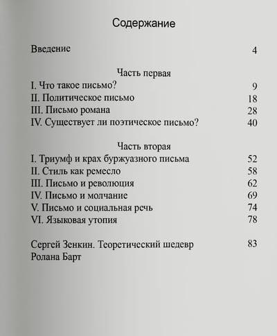 «Нулевая степень письма» (1953) — первая полноценная книга Ролана Барта, выросшая из журнальных статей 1940-х годов и написанная под впечатлением от эссе Жан-Поля Сартра «Что такое литература?». В этом основополагающем для своего дальнейшего творчества тексте Барт проводит различие между языком и стилем и определяет понятие «письмо», рассматривая этапы его эволюции, а также предлагает идею «нейтрального письма» — или «нулевой степени письма», — которое преодолевает литературу как буржуазную форму культуры. Работа стала манифестом эпохи «нового романа» и провозвестила структуралистскую революцию 1960-х. В 1999 году вошла в список ста лучших книг XX века, составленный газетой Le Monde.