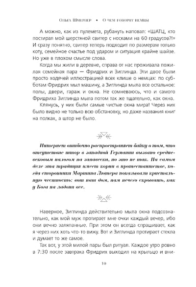 Автор Ольга Шмерлер — блогер, похоронный агент и доула смерти. Она уже более 20 лет живет в Германии, воспитывает детей, собаку, котов и ухаживает за домом, мужем и 102-летней свекровью, о чем активно делится в своем блоге. В книге «О чем говорят немцы» Ольга рассказала 52 захватывающие истории, которые заставят вас смеяться, плакать и вдохновят на путешествие. Вы сможете понять, как местные жители справляются с повседневными ситуациями — от запутанных семейных обедов до попыток объяснить, почему в Баден-Бадене все так любят гулять в шортах даже зимой.