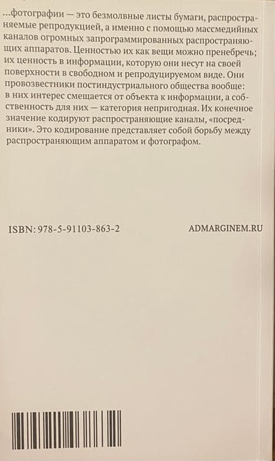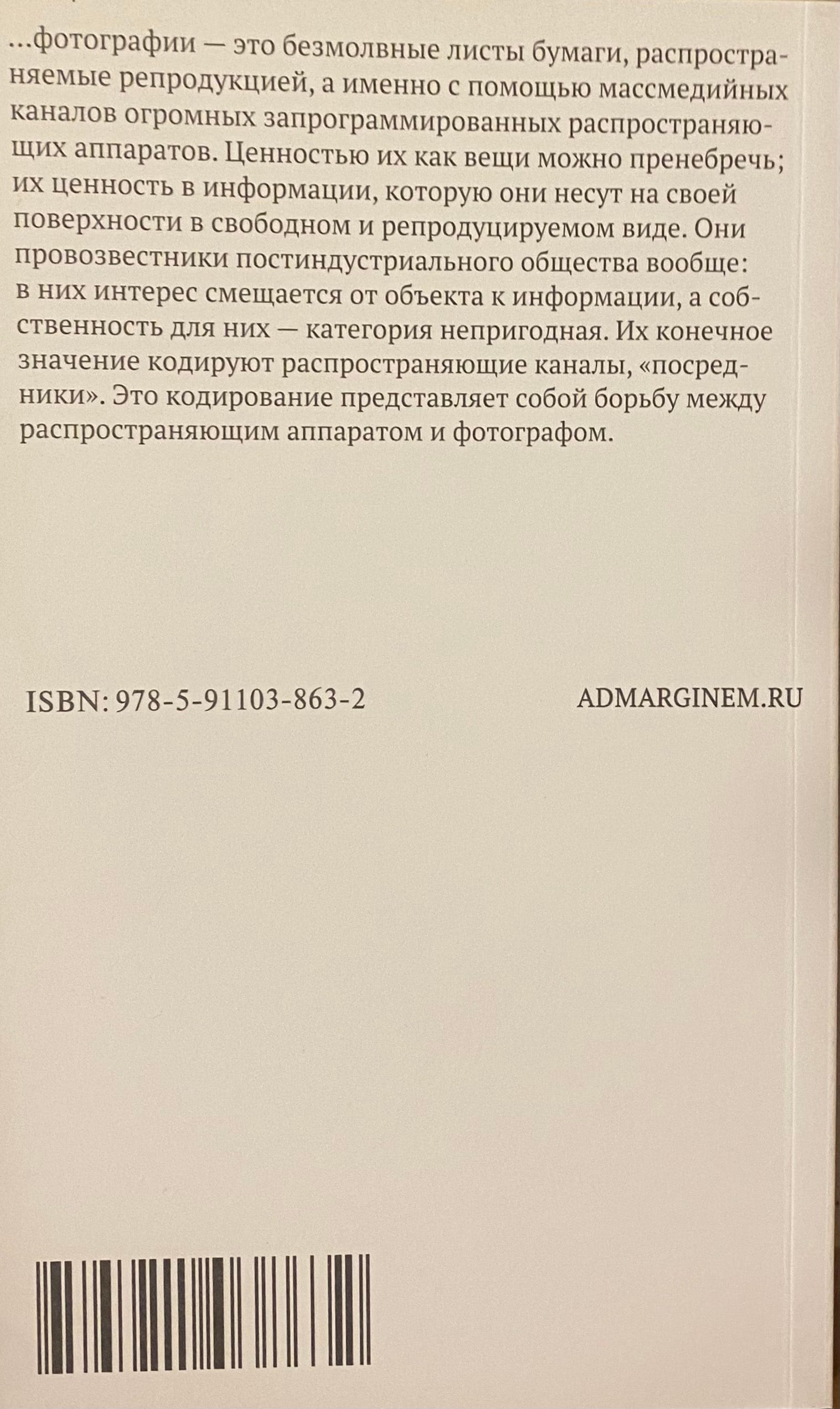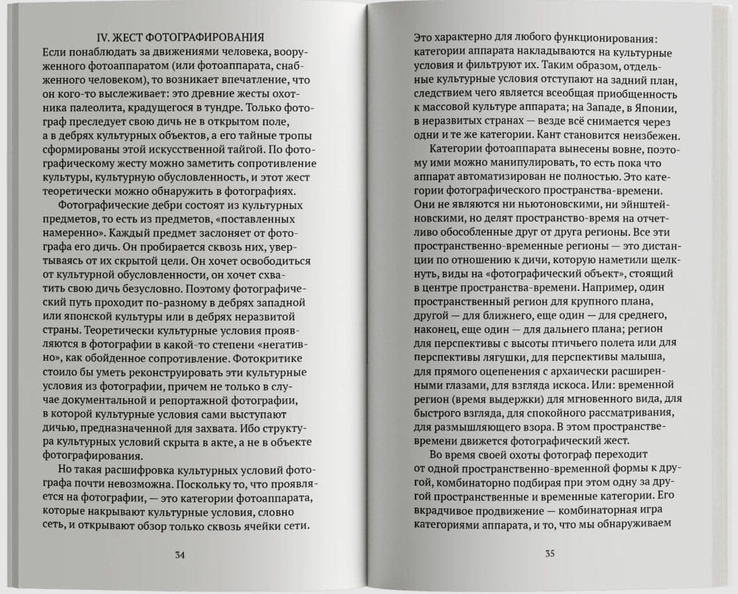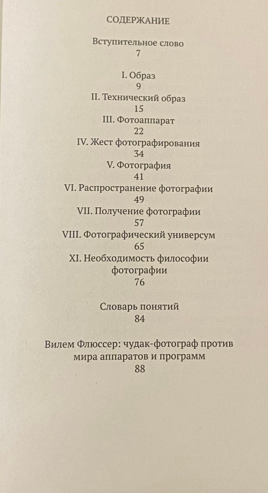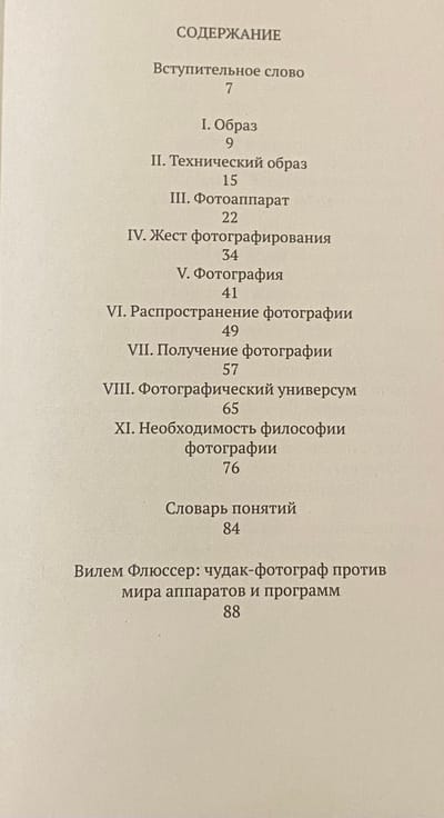 В эссе «О фотографии» видный немецкий теоретик медиа Вилем Флюссер задается вопросом, возможна ли свобода человека в условиях информационного общества, в мире, где господствуют аппараты, а наши мысли, чувства, желания и действия роботизируются. Намерение фотографа оказывается вписанным в строго ограниченный коридор программы камеры — черного ящика, симулирующего мышление, — так человек и аппарат сливаются в единое целое. По мысли Флюссера, философия фотографии становится исходной точкой для любого размышления о современном и наступающем бытии человека; она призвана открыть пространство для свободы художника — свободы играть против аппарата.