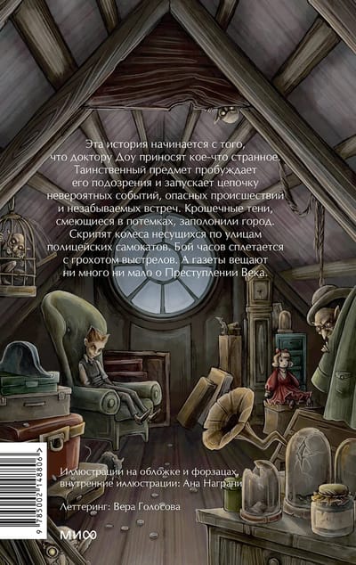 В этой истории вас ждут: тайны, невероятные злодеи, головокружительные приключения, неожиданные повороты сюжета, еще больше забавной мизантропии доктора Доу, иронии Джаспера и интриг мистера Блохха. И кто знает, возможно, у этой истории даже будет счастливый конец.