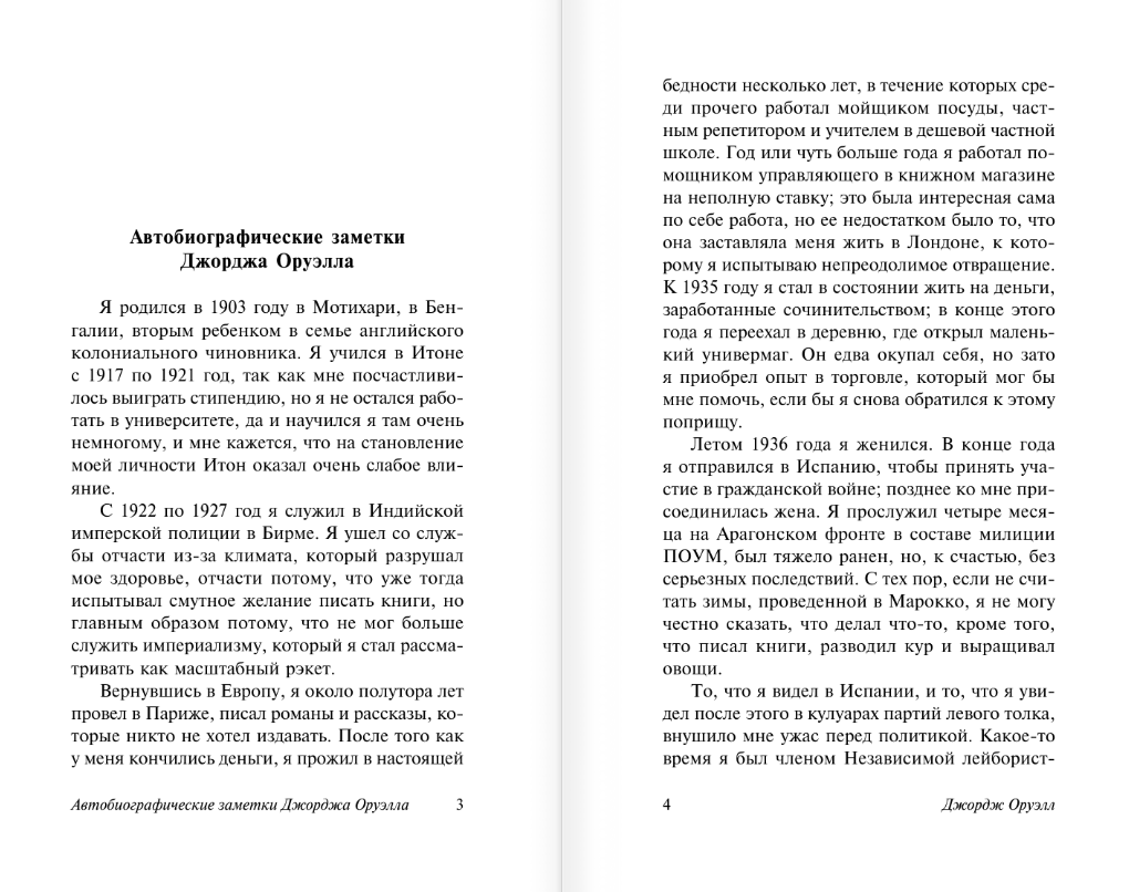 Джордж Оруэлл — известен не только как автор романа-антиутопии «1984» и повести «Скотный двор», также он был выдающимся журналистом, критиком и просто разносторонней личностью. Публицистика Оруэлла поднимает ряд острейших проблем, связанных с общественно-политической жизнью середины XX века.
