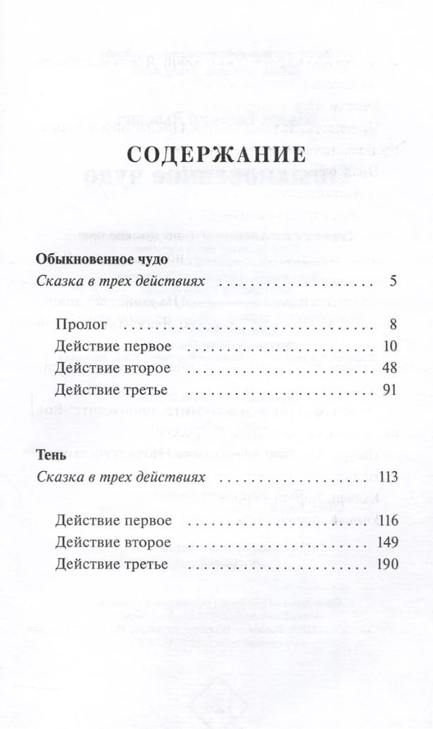 Две пьесы-сказки Евгения Шварца — «Обыкновенное чудо» (1954) и «Тень» (1940) — под одной обложкой. Режиссер Ленинградского театра комедии Н. П. Акимов писал: «У пьес Евгения Шварца такая же судьба, как у цветов, морского прибоя и других даров природы: их любят все, независимо от возраста».