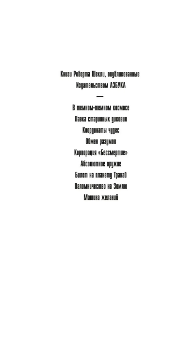 Книги Шекли будут читать всегда, пока живет человек читающий. Ведь если книга по-настоящему остроумна, то есть вместе и остра и умна, она найдет своего читателя независимо от капризов моды и деления на жанры и направления.