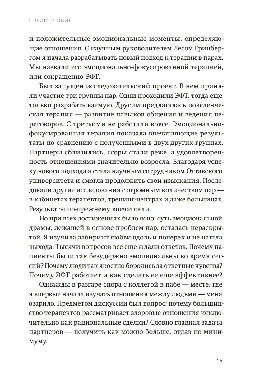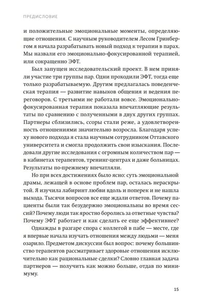 Ее автор — Сью Джонсон — вместе со своим научным руководителем разработала новый подход к терапии в парах — эмоционально-фокусированную терапию (ЭФТ).