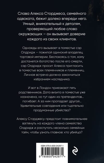 Алексу Сторджесу предстоит повнимательнее взглянуть на каждого члена семейства Олдриджей и распутать несколько семейных тайн, чтобы узнать главное: кто убийца?