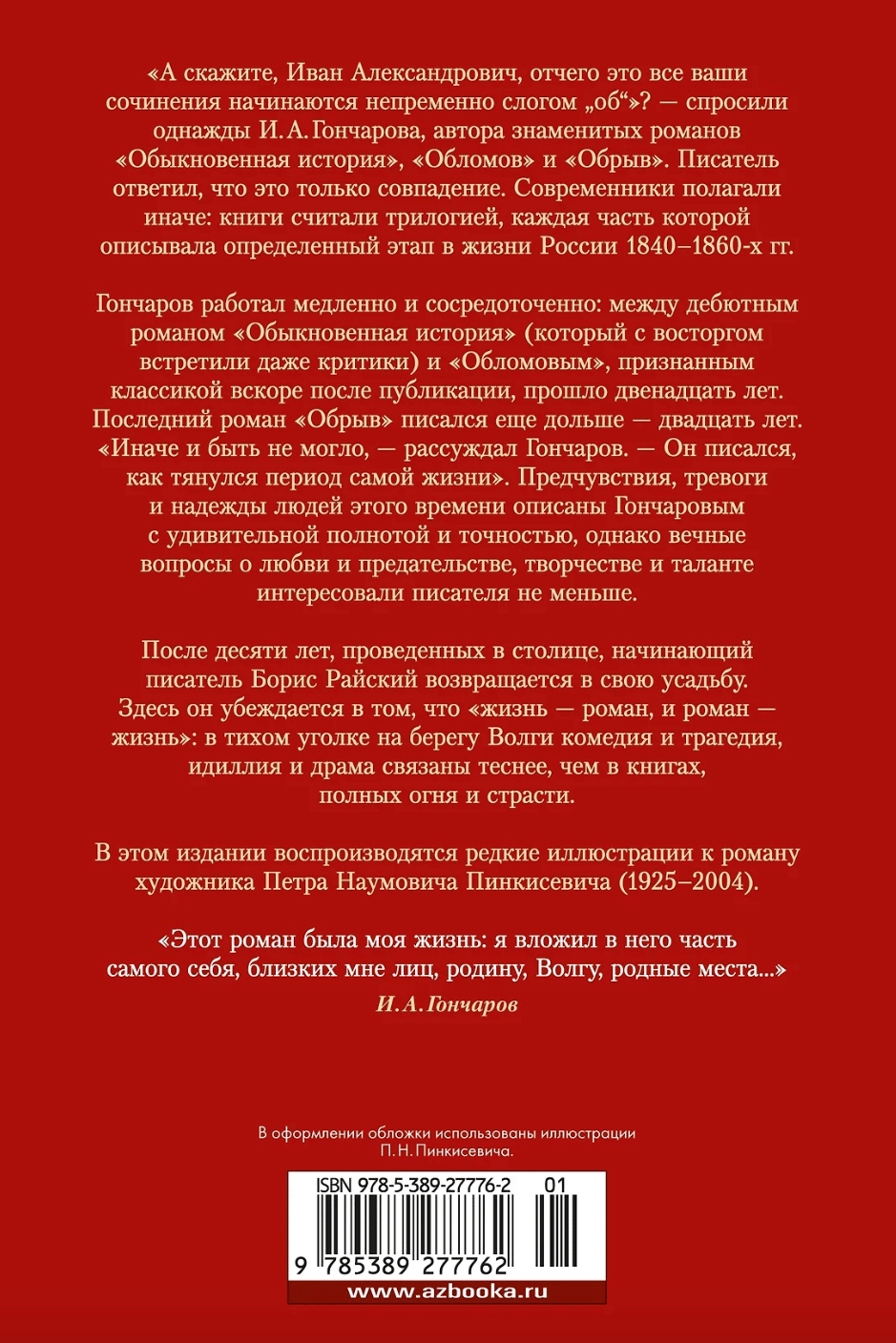 «А скажите, Иван Александрович, отчего это все ваши сочинения начинаются непременно слогом „об“»? — спросили однажды И. А. Гончарова, автора знаменитых романов «Обыкновенная история», «Обломов» и «Обрыв». Писатель ответил, что это только совпадение. Современники полагали иначе: книги считали трилогией, каждая часть которой описывала определенный этап в жизни России 1840–1860-х гг.