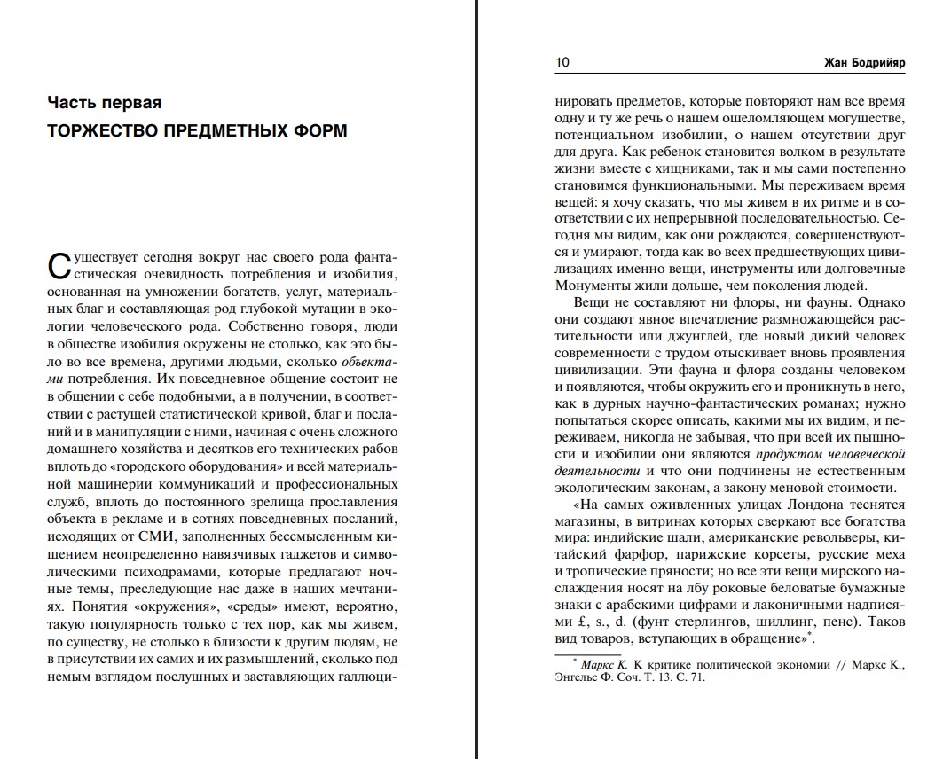 Работа Жана Бодрийяра, вышедшая в 1970 году, в буквальном смысле взорвала мироощущение молодых интеллектуалов всего мира. Абсолютную справедливость этой книги ежедневно доказывает в наше время сама жизнь современных цивилизованных стран – с ее дауншифтингом и «осознанным потреблением», неприятием «культа роскоши», возвращением к нематериальным ценностям, расцветом феминизма и даже медленной смертью «индустрии высокой моды» и «индустрии красоты».