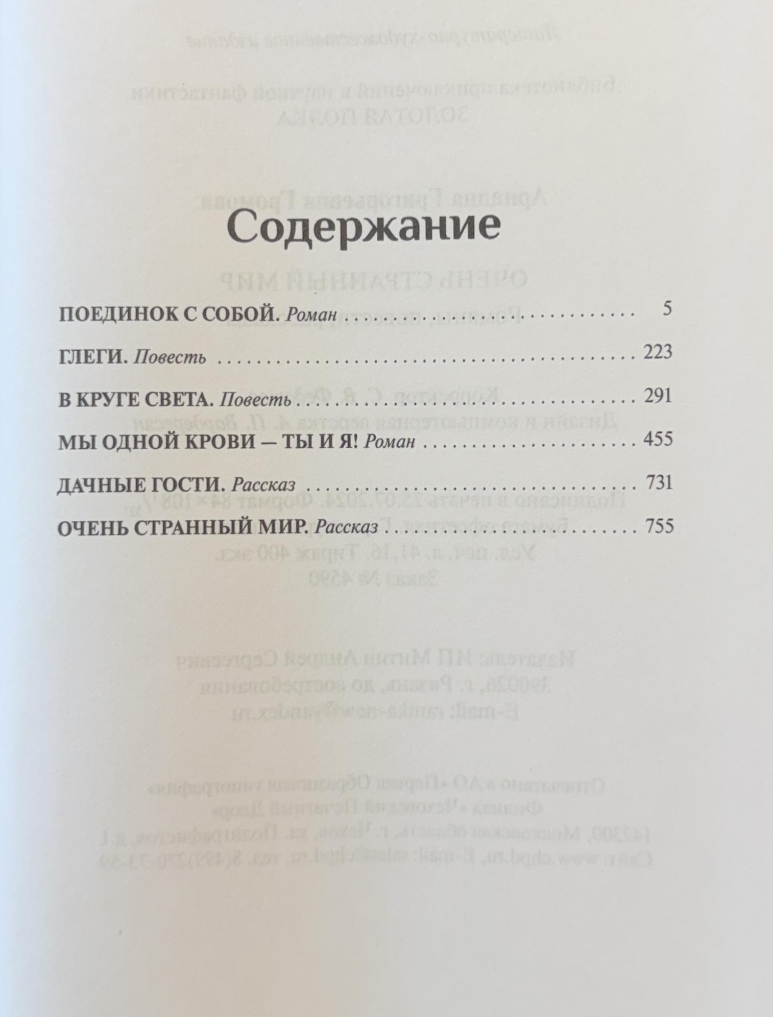В первый том собрания сочинений одного из классиков отечественной фантастики Ариадны Громовой вошли романы «Поединок с собой» и «Мы одной крови — ты и я!», повести «Глеги» и «В круге света», рассказы «Дачные гости» и «Очень странный мир».