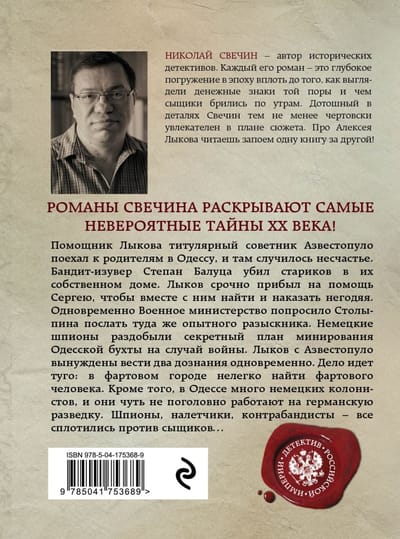 Бандит-изувер Степан Балуца убил стариков в их собственном доме. Лыков срочно прибыл на помощь Сергею, чтобы вместе с ним найти и наказать негодяя. Одновременно Военное министерство попросило Столыпина послать туда же опытного розыскника. Немецкие шпионы раздобыли секретный план минирования Одесской бухты на случай войны. Лыков с Азвестопуло вынуждены вести два дознания одновременно. Дело идет туго: в фартовом городе нелегко найти фартового человека. Кроме того в Одессе много немецких колонистов, и они чуть не поголовно работают на германскую разведку. Шпионы, налетчики, контрабандисты – все сплотились против сыщиков…