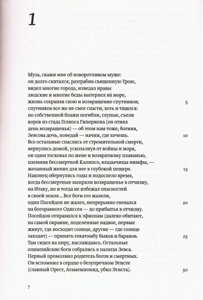 Герои «Одиссеи» живут в мире вещном, в предельной, почти кинематографической очевидности мироздания. Этот текст осязаем и зрим, даже если речь идет о сказочном острове Цирцеи или о пещере циклопа Полифема. Основная задача нового перевода «Одиссеи» — высветлить вещную пронзительность гомеровского мира.