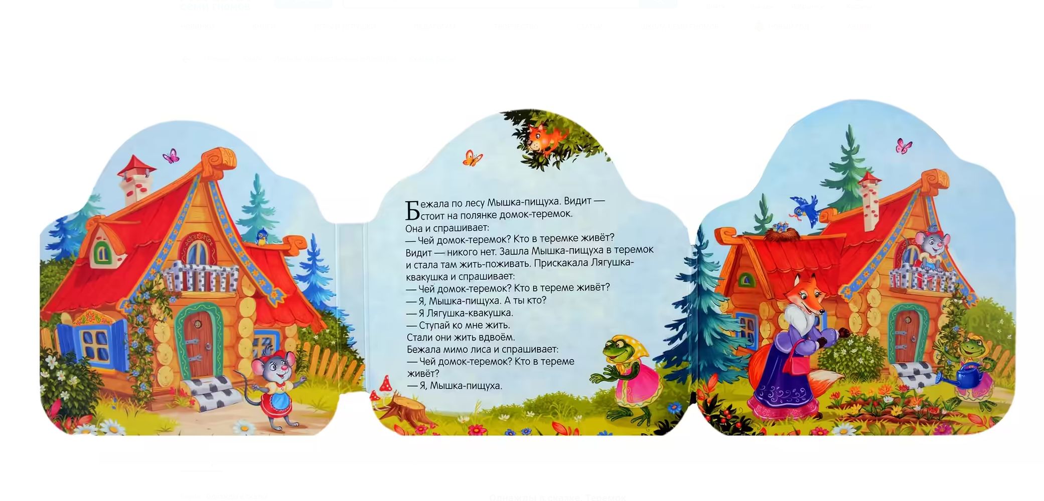 Серия двусторонних книжек-гармошек «Однажды в сказке» от торговой марки Malamalama — это любимые истории в удобном формате. Книжка-гармошка «Теремок» познакомит вашего малыша с одной из самых известных русских народных сказок про дружных зверей и их чудесный теремок. Книга сделана из плотного картона и очень удобна для детских пальчиков. На каждой страничке — красочные иллюстрации, погружающие в сказочный сюжет. Благодаря миниатюрному формату книгу легко хранить и брать с собой в дорогу или на прогулку.