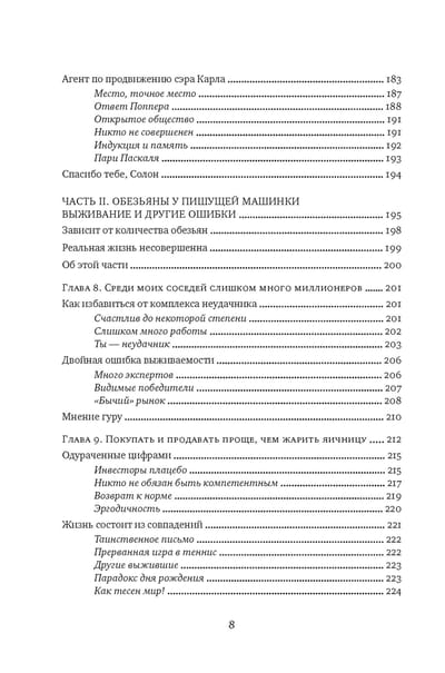 Случайность, удача, шанс, неопределенность, вероятность, человеческие ошибки, риск и принятие решений в мире, который мы не понимаем, — неисчерпаемые в своей многогранности темы, которые исследует успешный трейдер, математик и философ Нассим Талеб, подготавливая нас к достойной встрече лицом к лицу с вызовами и непредвиденными событиями любого рода. «Вероятность — это не столько вычисление шансов при бросании костей, сколько признание недостатка определенности в наших знаниях и развитие методов обращения с нашим неведением. За пределами учебников и казино вероятность почти никогда не предстает в виде математической задачи или загадки для ума. Мать-природа не скажет вам, сколько лунок есть на столе для игры в рулетку, да и задачи она формулирует не в том стиле, который принят в учебниках (в реальном мире приходится искать проблему, а не решение). Вероятностное мышление, лежащее в основе этой книги, предполагает, что, если бы осуществились альтернативные исходы, мир был бы другим». (Нассим Николас Талеб)