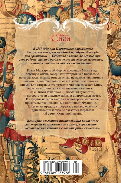 «Огненные палаты» — масштабный исторический роман-триллер культовой писательницы Кейт Мосс. Действие разворачивается во Франции в 1562 году накануне кровопролитных Религиозных войн между католиками и гугенотами. Жизнь девятнадцатилетней Маргариты — дочери книготорговца из Каркасона — в одночасье меняется, когда она получает анонимное письмо с таинственной фразой: «Она знает, что вы живы», а вскоре ее путь пересекается с Питом Рейдоном — отважным гугенотом, выполняющим опасную миссию, способную изменить судьбу целой нации. Молодым людям предстоит спасать свои жизни в охваченной беспорядками Тулузе, совершить нелегкое путешествие к уединенному замку в отрогах Пиренеев и попытаться добиться справедливости — не только для себя, но и для тех, кто ждет от них помощи.