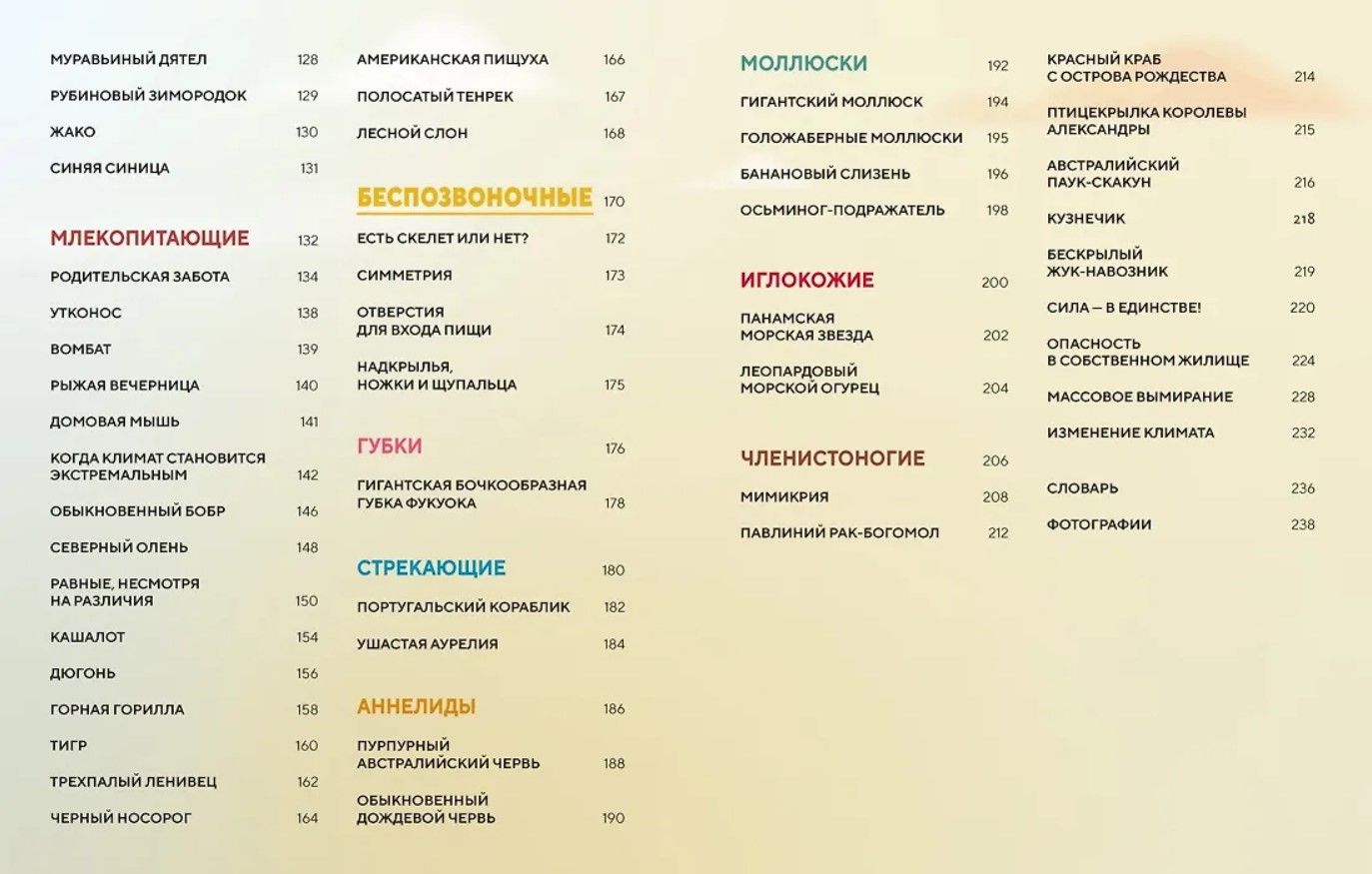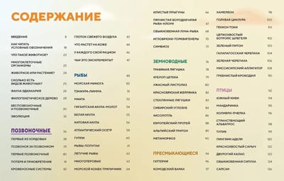- множество фактов про ареал обитания животных, особенности их внешнего вида и питания, а также причины, почему некоторые виды находятся под угрозой исчезновения;