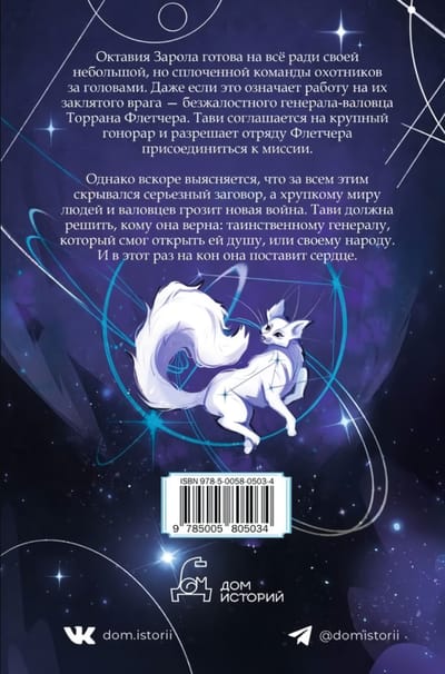 Октавия Зарола готова на все ради своей небольшой, но сплоченной команды охотников за головами. Даже если это означает работу на их заклятого врага - безжалостного генерала-валовца Торрана Флетчера. Тави соглашается на крупный гонорар и разрешает отряду Флетчера присоединиться к миссии. Однако вскоре выясняется, что за всем этим скрывался серьезный заговор, а хрупкому миру людей и валовцев грозит новая война. Тави должна решить, кому она верна: таинственному генералу, который смог открыть ей душу, или своему народу. И в этот раз на кон она поставит сердце.