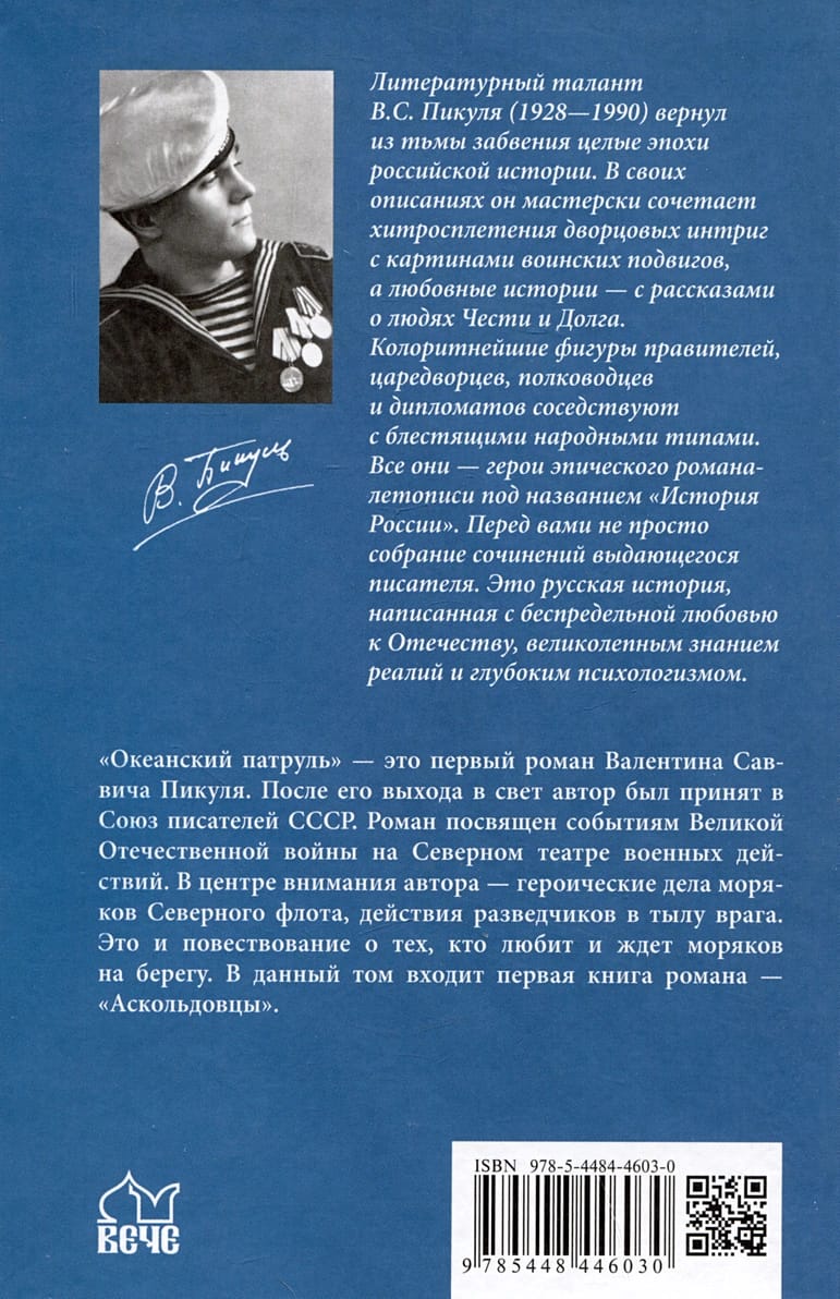 «‎Океанский патруль»‎ - это первый роман Валентина Саввича Пикуля. После его выхода в свет автор был принят в Союз писателей СССР. Роман посвящен событиям Великой Отечественной войны на Северном театре военных действий. В центре внимания автора - героические дела моряков Северного флота, действия разведчиков в тылу врага. Это и повествование о тех, кто любит и ждет моряков на берегу.