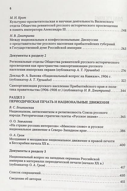 В сборнике представлены результаты коллективного исследования особенностей развития национальных окраин в составе Российского государства в конце XIX - начале XX в. В центре внимания авторов - вопросы формирования, развития, идеологии русского национального движения на этих территориях. Исследование выполнено на основе широкого круга исторических источников, включая значительное количество впервые вводимых в научный оборот документов из российских федеральных архивов. Издание предназначено для научных работников, преподавателей, аспирантов, студентов, а также всех заинтересованных читателей.