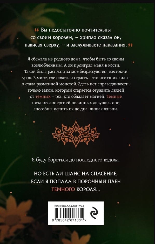 Такой была расплата за мое безрассудство, жестокий урок. В мире, где похоть и страсть — это источник силы, я стала разменной монетой. Здесь нет справедливости, только закон, который старается оградить людей от Темных — тех, кто обладает магией. Темные питаются энергией невинных девушек, они способны испить их до дна, лишая жизни.