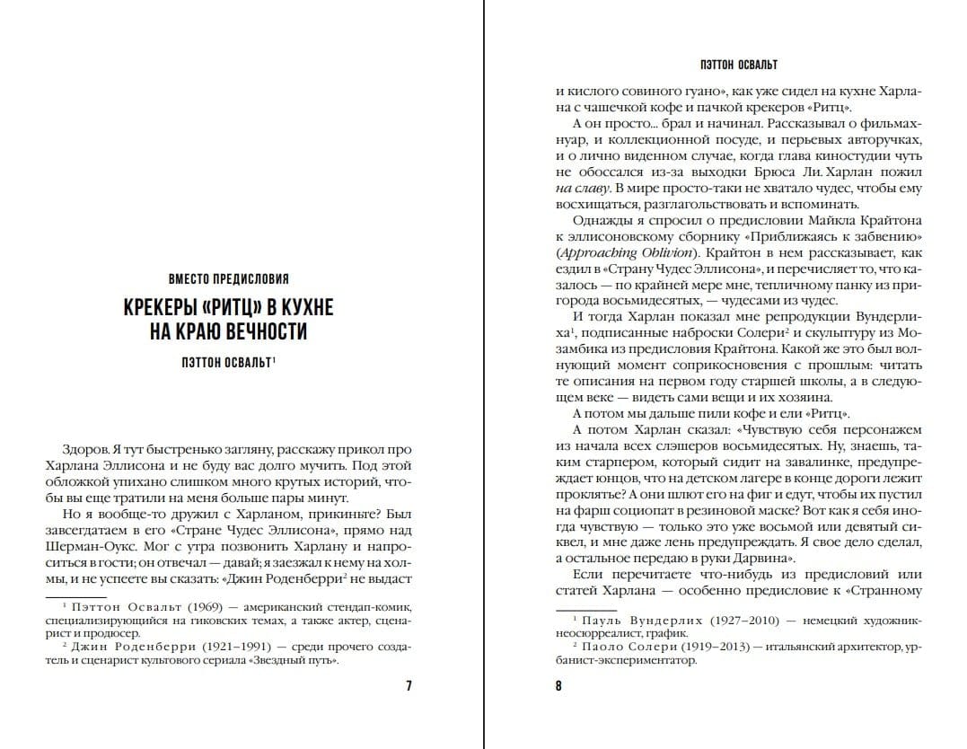 Для каждого рассказа Харлан Эллисон написал оригинальное предисловие, знакомящее читателя с автором. Сами же писатели подготовили для своих текстов послесловия, раскрывающие нюансы творческого поиска. Для антологии в целом предисловия написали грандмастер «золотого века» фантастики Айзек Азимов, отец «новой волны» Майкл Муркок и продолжатель дела Эллисона — Майкл Стражинский.