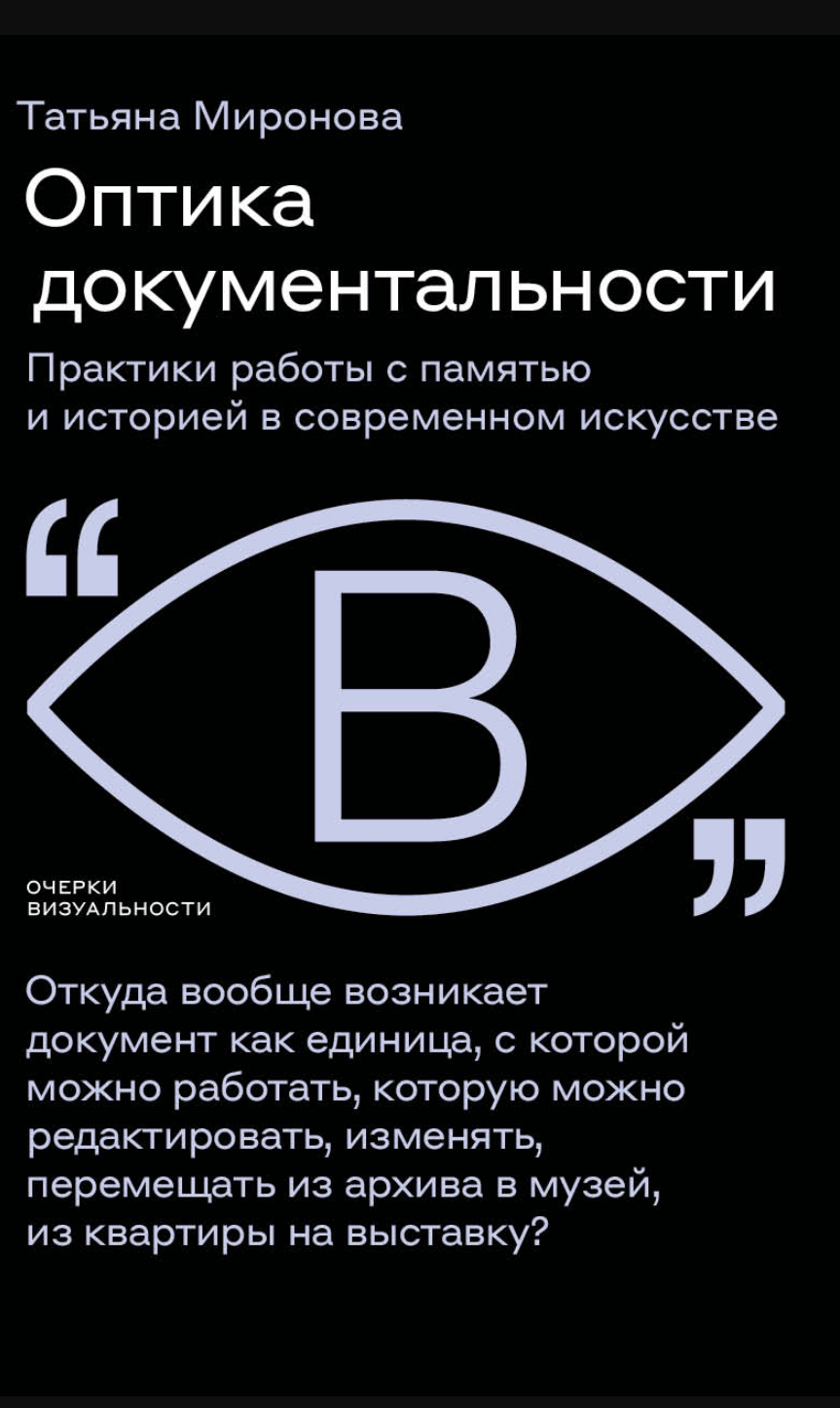 «Каждый человек заслуживает собственного музея», — говорил французский художник Кристиан Болтански, на протяжении многих лет исследовавший вопросы памяти и забвения. Он оказал большое влияние на современных художников, также ищущих способы осмысления и репрезентации напряжения между «маленькой памятью» и «большой памятью» (пользуясь выражением Болтански). В своей книге Татьяна Миронова показывает, что этот поиск приводит художников к работе с документом, которым становится практически любой предмет: дневник, памятный сувенир, письмо или случайно найденная фотография. Как утверждает автор, соединение таких материалов и художественных средств выражения формирует особое пространство, в котором статус документа меняется, а вслед за ним расширяется наше восприятие истории и памяти. Татьяна Миронова — исследовательница современного искусства, куратор, преподаватель НИУ ВШЭ.