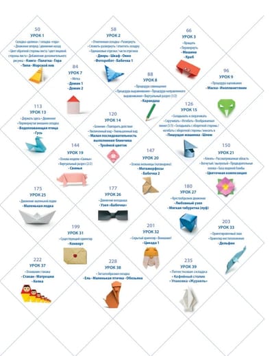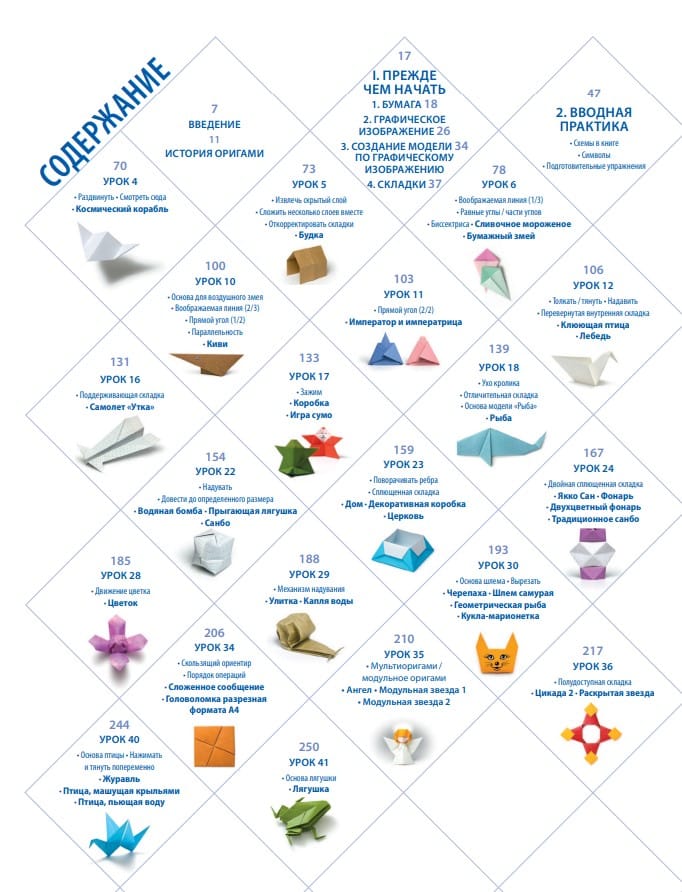 Самый полный курс по оригами, который начинается с простейших складываний, чтобы постепенно привести вас к все более сложным проектам. Каждый урок состоит из объяснений по конкретному пункту или методу, которые представленны в виде иллюстрированных пошаговых мастер-классов. Все методы, жесты и диаграммы подробно описаны. Помимо моделей, предлагаемых здесь, эта книга позволит любому любителю оригами расшифровать творения, представленные в других книгах, и избежать некоторых трудностей, которые могут возникнуть в процессе складывания оригами.