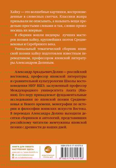 В книгу вошли шедевры лучших мастеров поэзии хайку, крупнейших поэтов Средневековья и Cеребряного века.