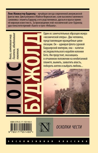 «Осколки чести» - один из замечательных образцов жанра «космической оперы». Два человека, представляющие враждебные цивилизации. Он – адмирал флота суровой Барраярской империи, она – капитан исследовательского корабля колонии Бета. Им предстоит, оказавшись в отчаянном положении на необитаемой планете, выжить, захватить власть, побороть мятеж и выбрать любовь…