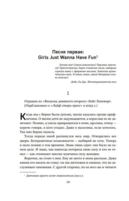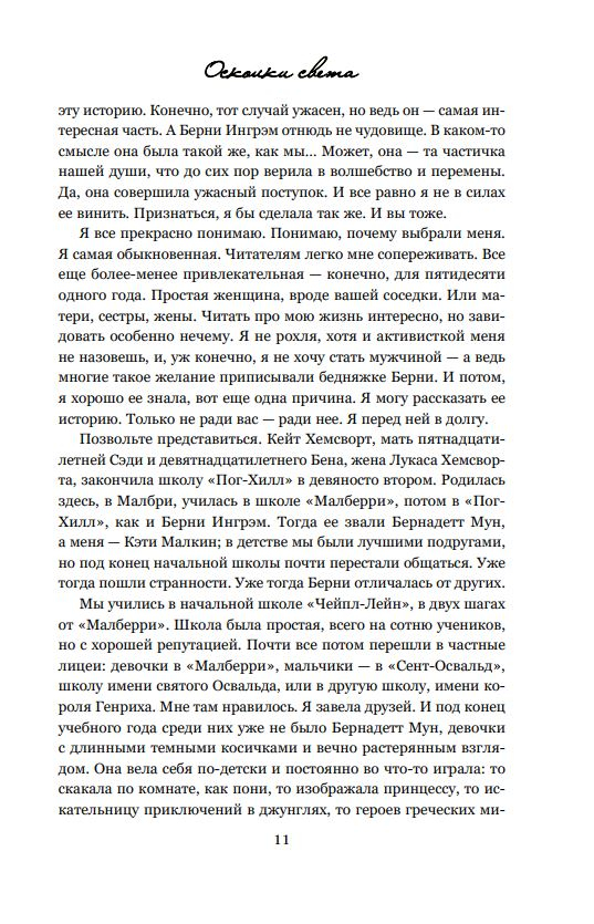Главная героиня решает изменить существующие стереотипы в обществе и доказать, что открыть в себе новые способности и стремления можно в любом возрасте, а также, что никогда не поздно начать жить для себя. Берни Мун чувствует себя невидимкой. Она отдала свою жизнь другим людям — мужу, сыну, матери, друзьям (хотя у нее никого из них не осталось). В 16 лет она была полна надежд и сил. Теперь, когда ей исполнилось 50, она угасает. Но когда в ее районе убивают молодую женщину, это пробуждает детские воспоминания о таланте, который у нее когда-то был. Она обещала себе, что больше никогда им не воспользуется. Она знает, что это может уничтожить не только ее, но и всех вокруг. Берни Мун больше не остается незамеченной, но готовы ли окружающие принять ее желание измениться? Книга понравится поклонникам детективов, магического реализма, триллеров и качественной женской прозы.