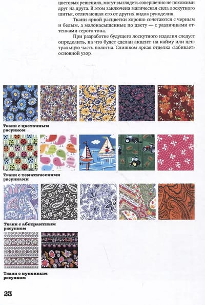 Особое внимание уделено разнообразию лоскутных схем — от классических до комбинированных мотивов, а также видов аппликаций и объемных элементов.