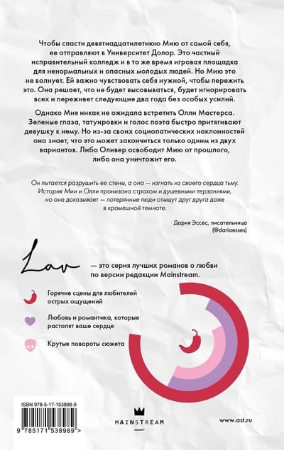 Однако Мия никак не ожидала встретить Олли Мастерса. Зеленые глаза, татуировки и голос поэта быстро притягивают девушку к нему. Но из-за своих социопатических наклонностей она знает, что это может закончиться только одним из двух вариантов.