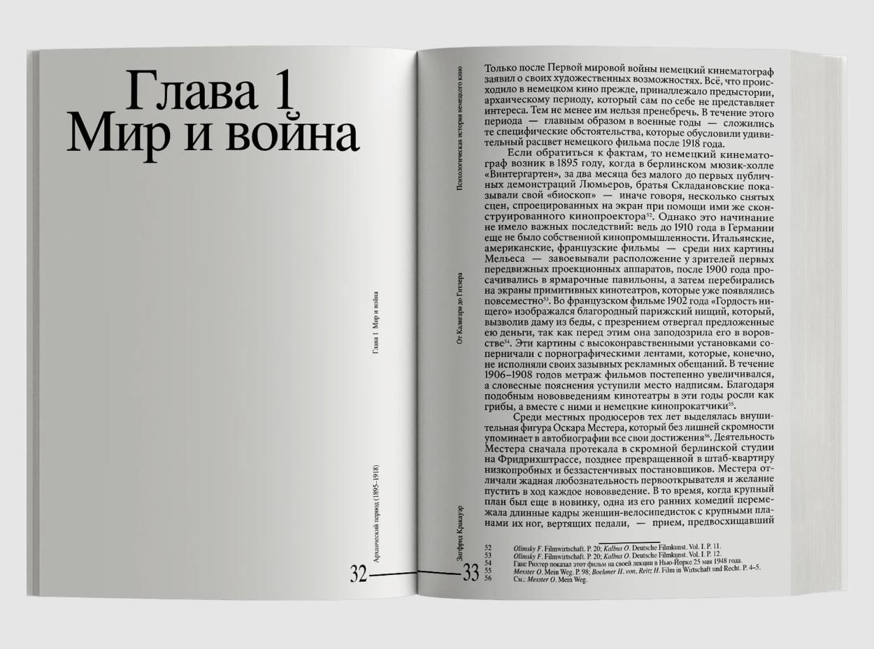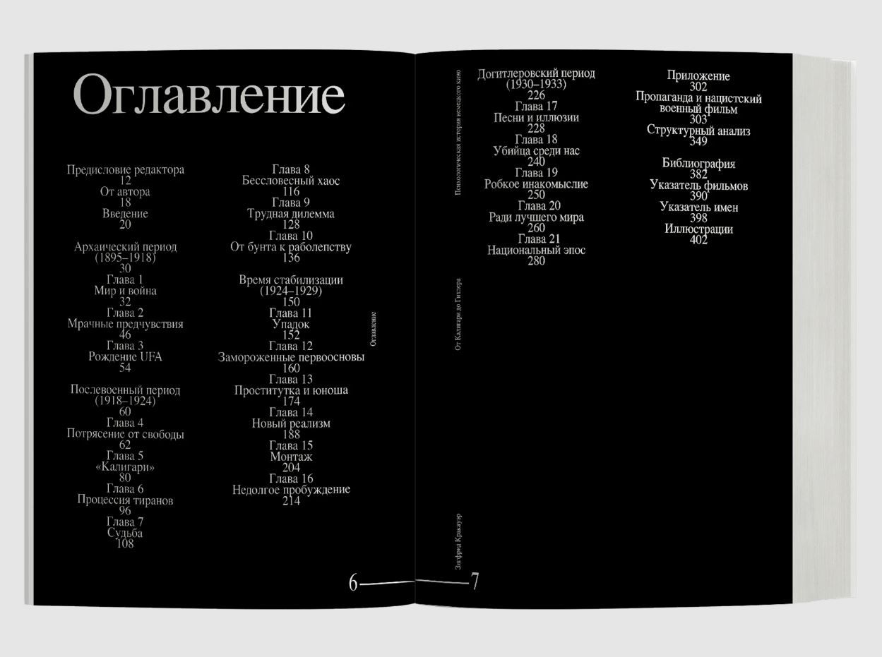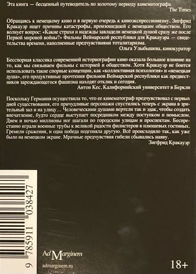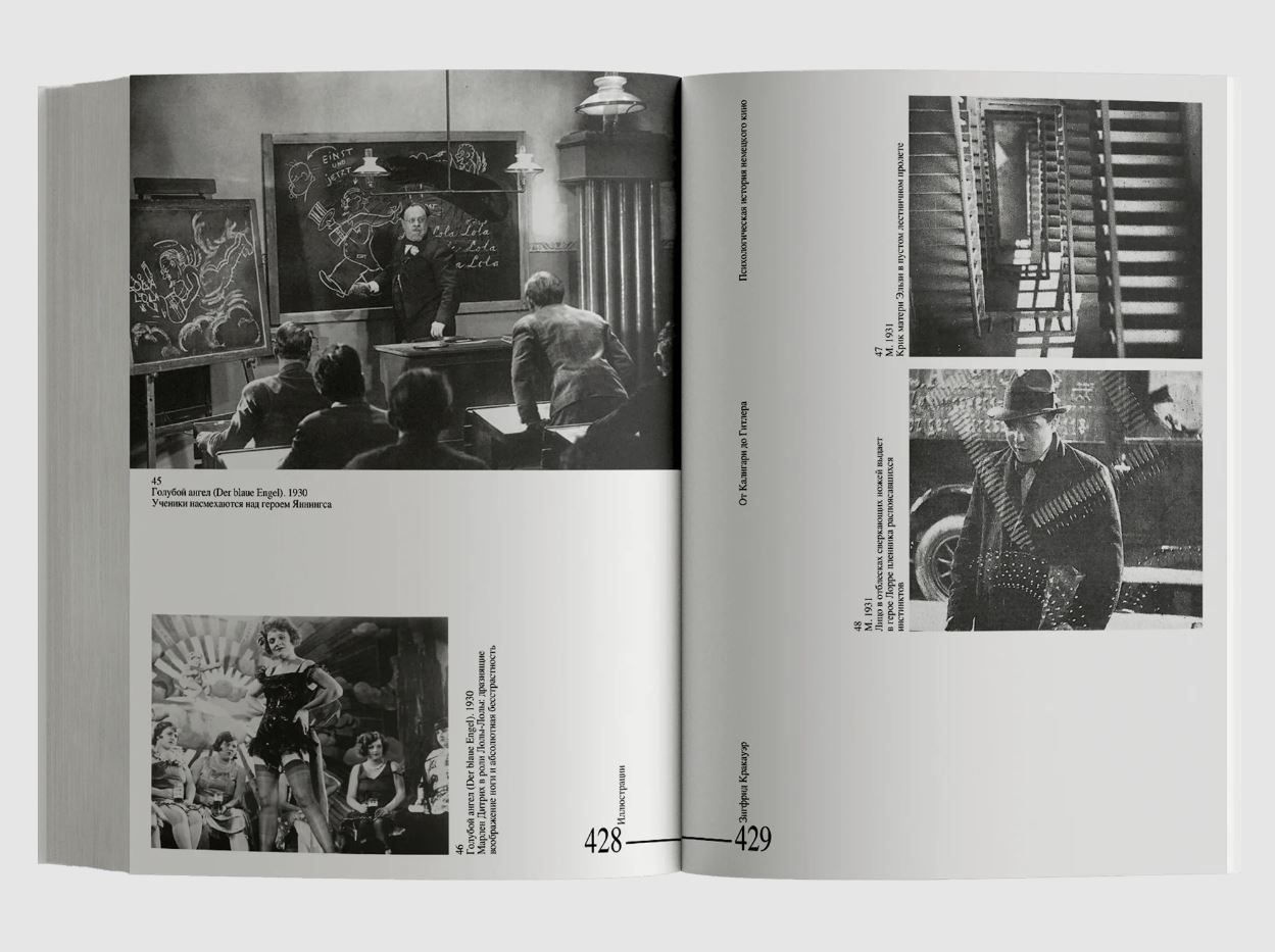 Одна из главных монографий о немецком кино и самая известная книга Зигфрида Кракауэра (1889–1966) была написана им в эмиграции и вышла в США в 1947 году. Автор, социолог и теоретик кинематографа и культуры, анализирует внутренние установки и паттерны немецкого общества, объекты коллективного вытеснения, нашедшие отражение в классических фильмах догитлеровской эпохи. Для Кракауэра кино — сложный и многогранный феномен, он писал о разных его аспектах («Веймарские эссе», «Теория кино» и др.). В этой книге кино — прежде всего проявление массовой культуры, искусство a priori коллективное, которое, будучи плодом совместных усилий, утоляет и одновременно провоцирует скрытые желания широкого зрителя.