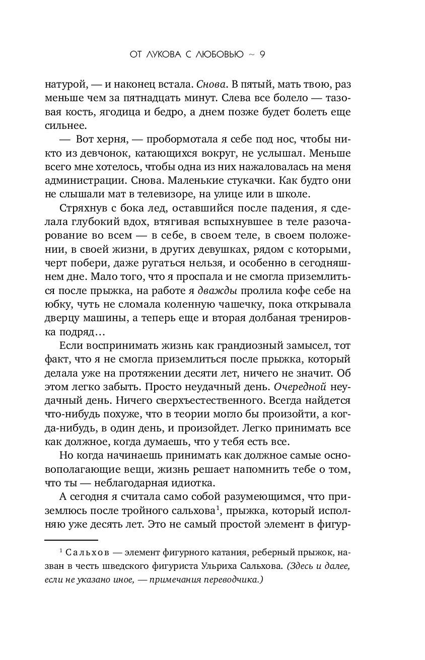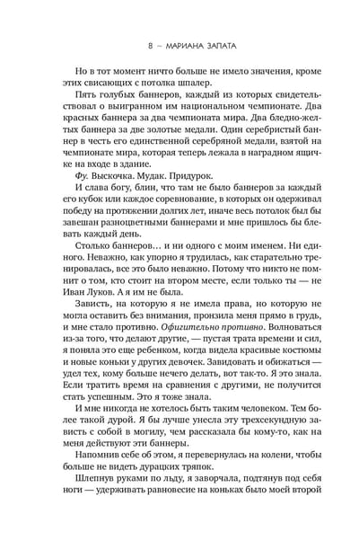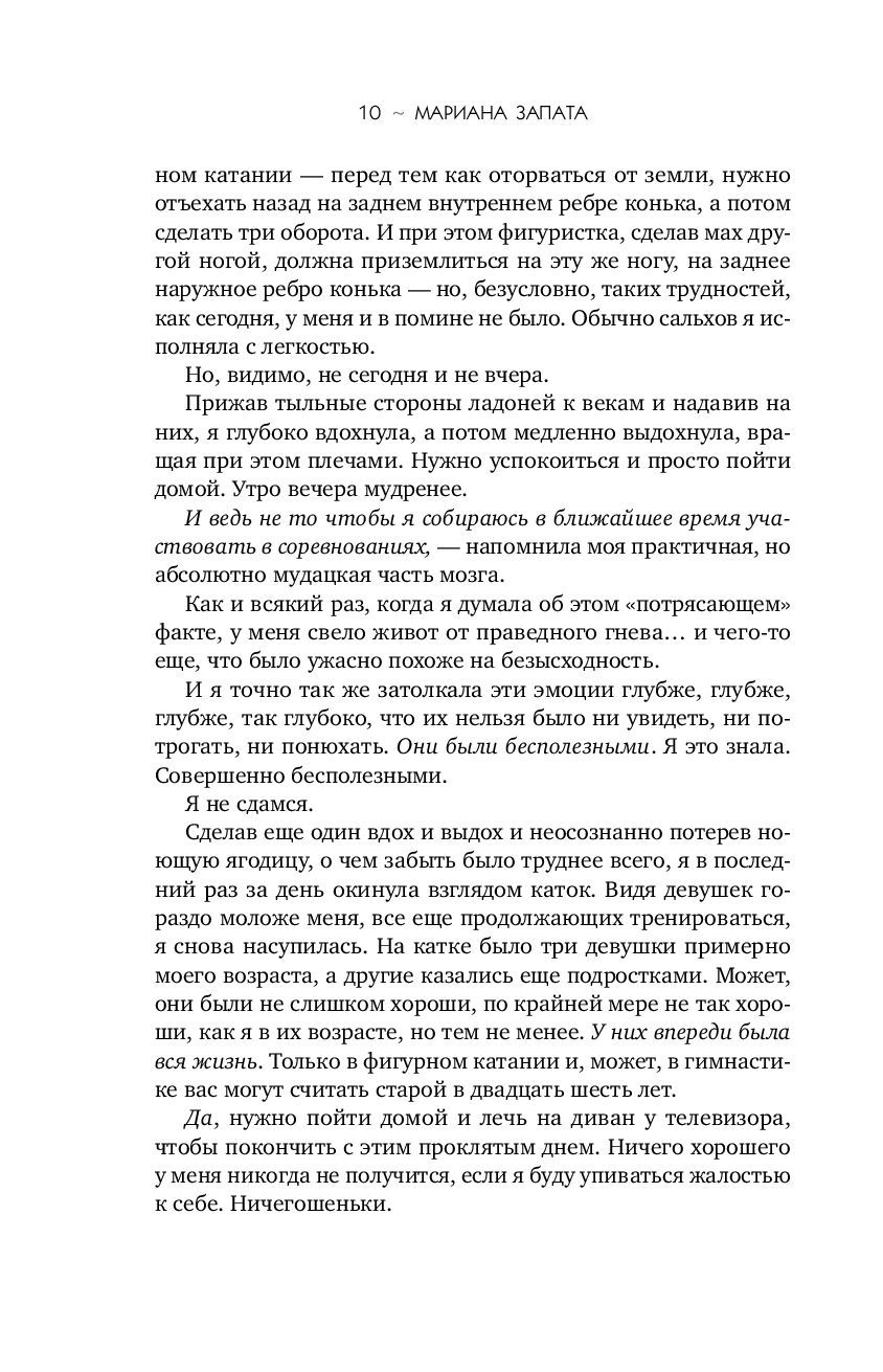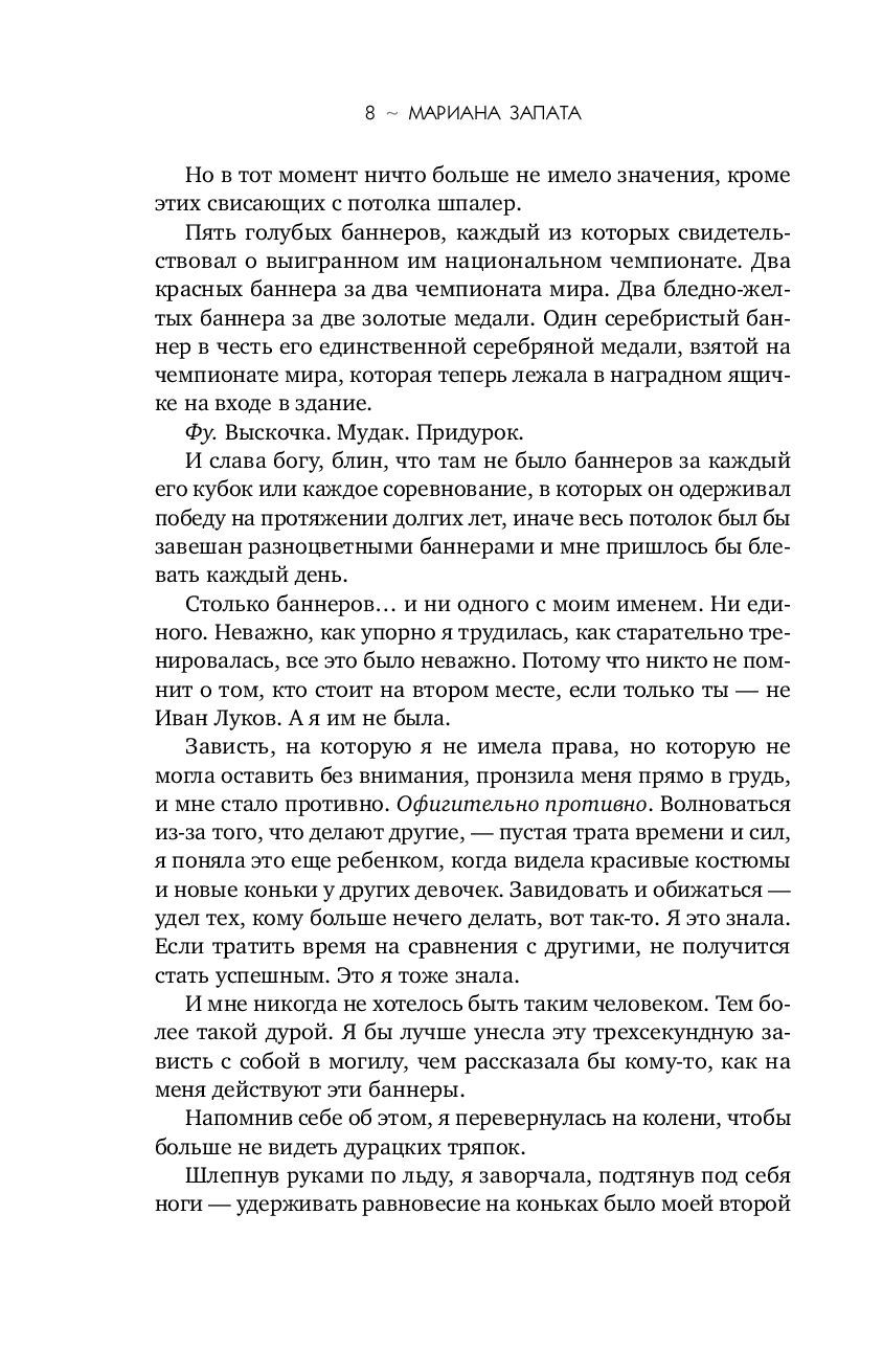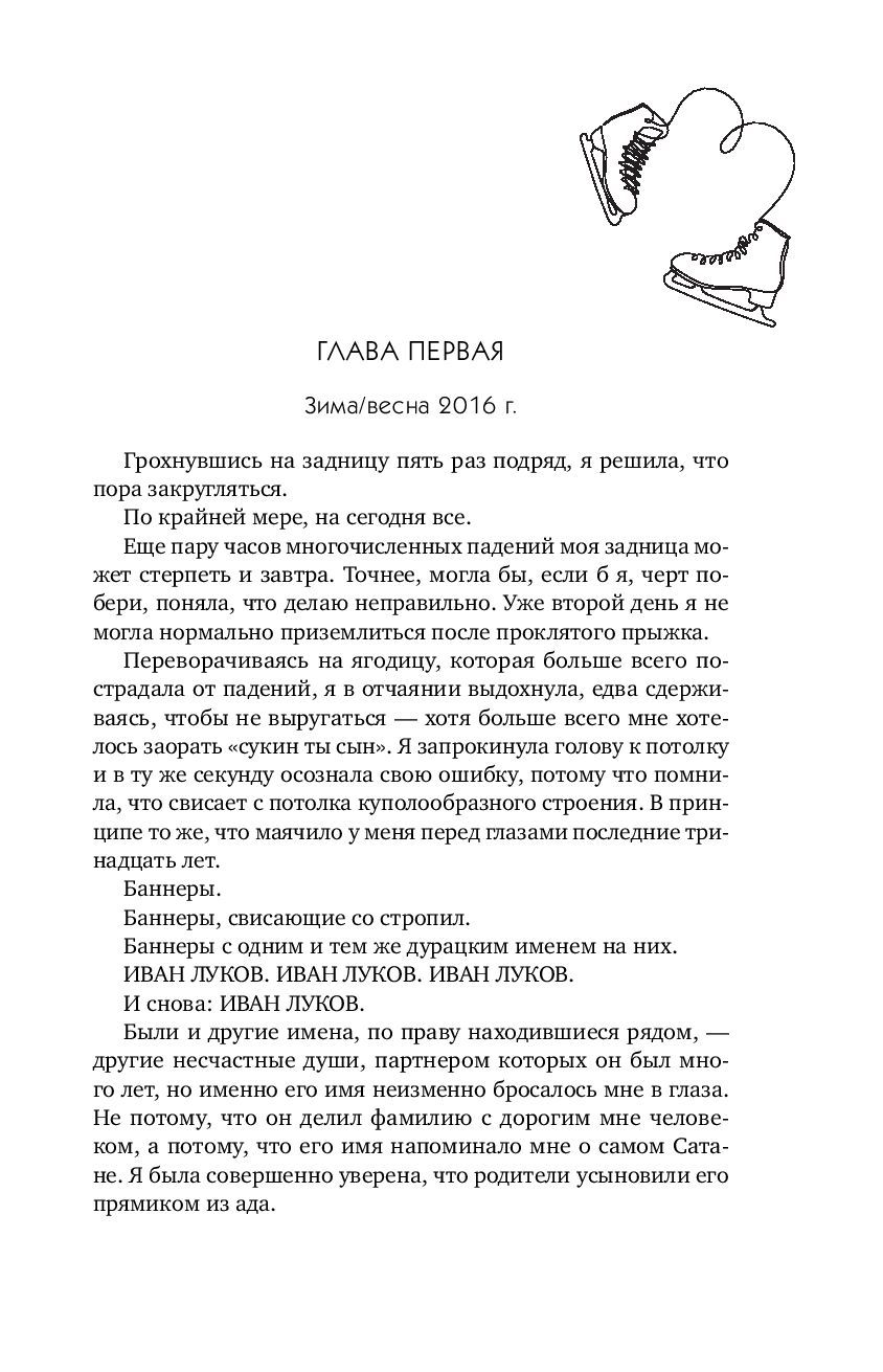 Он — чемпион. Она — неудачница. И они ненавидят друг друга. Джесмин Сантос не мыслит жизни без фигурного катания, но ей еще ни разу не удавалось занять первое место… К тому же, ее бросает партнер, и Джесмин в отчаянии. Пока ей не подворачивается возможность выступать в паре с Иваном Луковым — братом ее лучшей подруги и по совместительству настоящей звездой фигурного катания. Есть только одно «но»: Джесмин терпеть не может Ивана. Как и он ее. Их тандем предвещает много, очень много ссор. Но Джесмин решает рискнуть.Правда ли она готова на все ради успеха? Обжигающе ледяная история «от ненависти до любви» от королевы слоуберна Марианы Запаты.