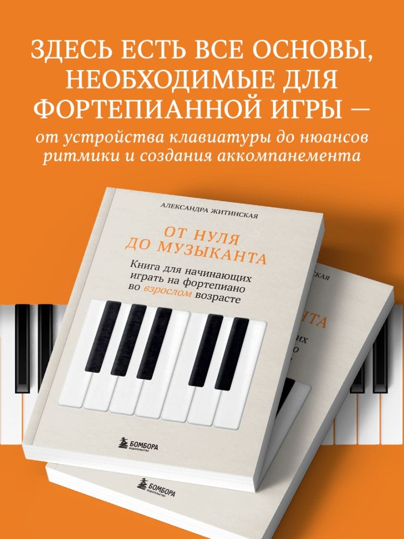 Автор книги Саша Житинская, выпускница Санкт-Петербургской консерватории, показывает, что игра на фортепиано — это навык, которым можно овладеть и во взрослом возрасте. Нужно только иметь правильный настрой, не терять мотивацию и по-настоящему любить музыку. Книга поможет вам создать реалистичный план обучения и укажет те ориентиры, которые позволят справиться с трудностями, возникающими на пути к красивой и свободной игре на инструменте.