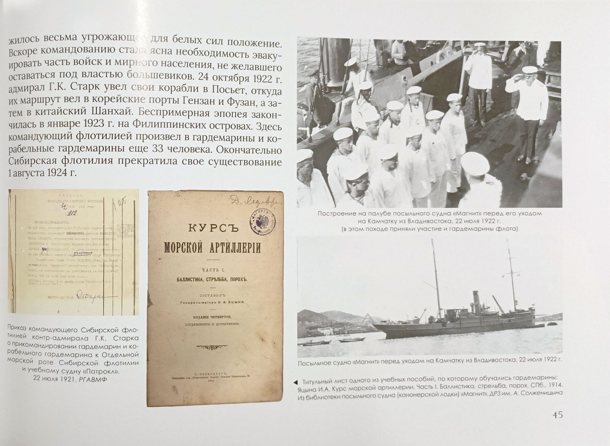 В основу книги легли материалы выставочного проекта Дома русского зарубежья имени Александра Солженицына и Фонда наследия русского зарубежья «Последние гардемарины. 1918–1925. Петроград — Владивосток — Севастополь — Бизерта».