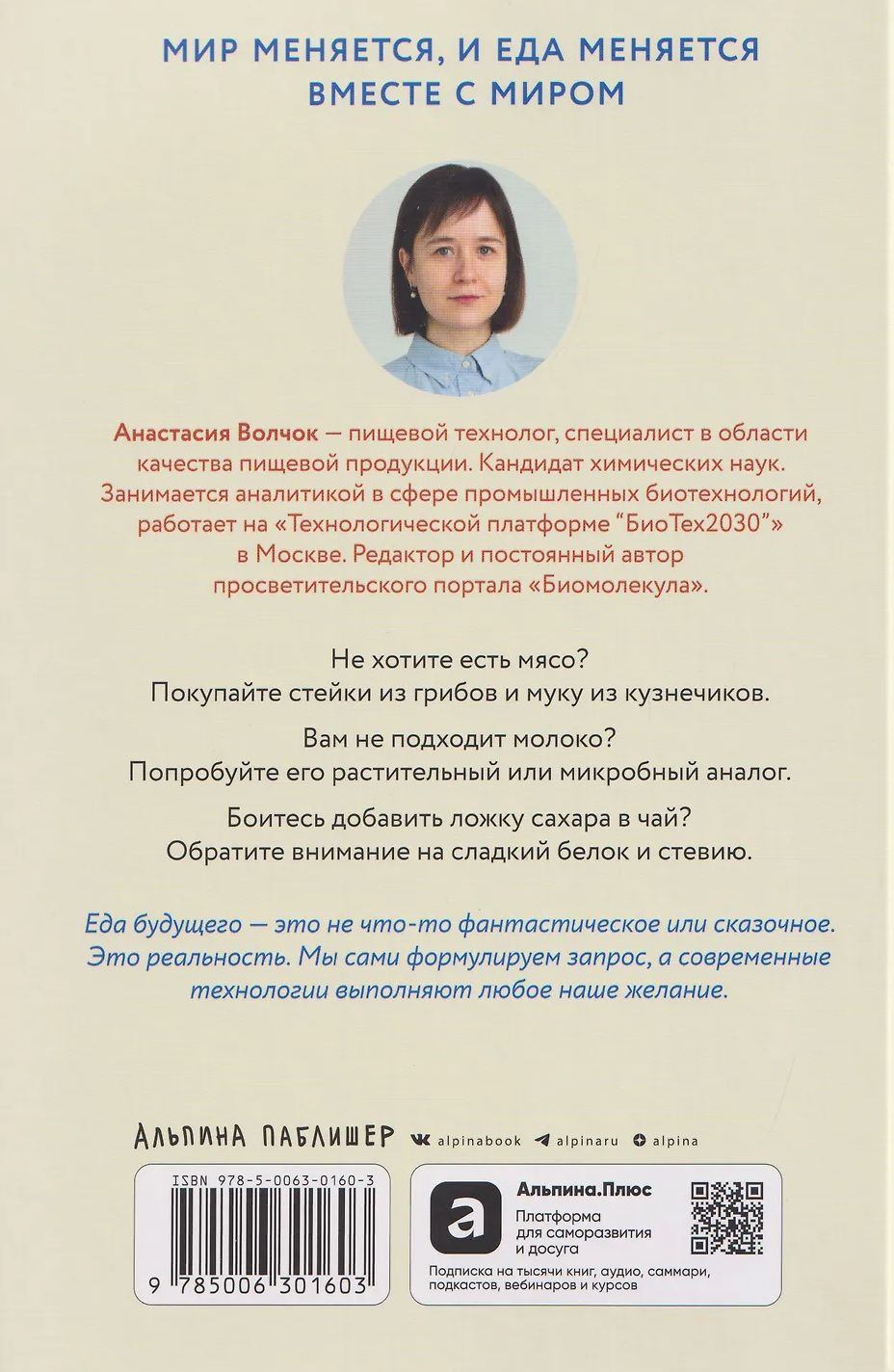 Анастасия Волчок, к. х. н., пищевой технолог, специалист в области качества пищевой продукции, в этой книге рассказала о современных технологиях производства продуктов питания: мяса и его заменителей, молока и молочных продуктов, овощей и фруктов, напитков, сахара, биологически активных добавок. А также о том, как дальше будет развиваться генная инженерия, какие новые продукты появятся на нашем столе уже завтра и почему этого не надо бояться.