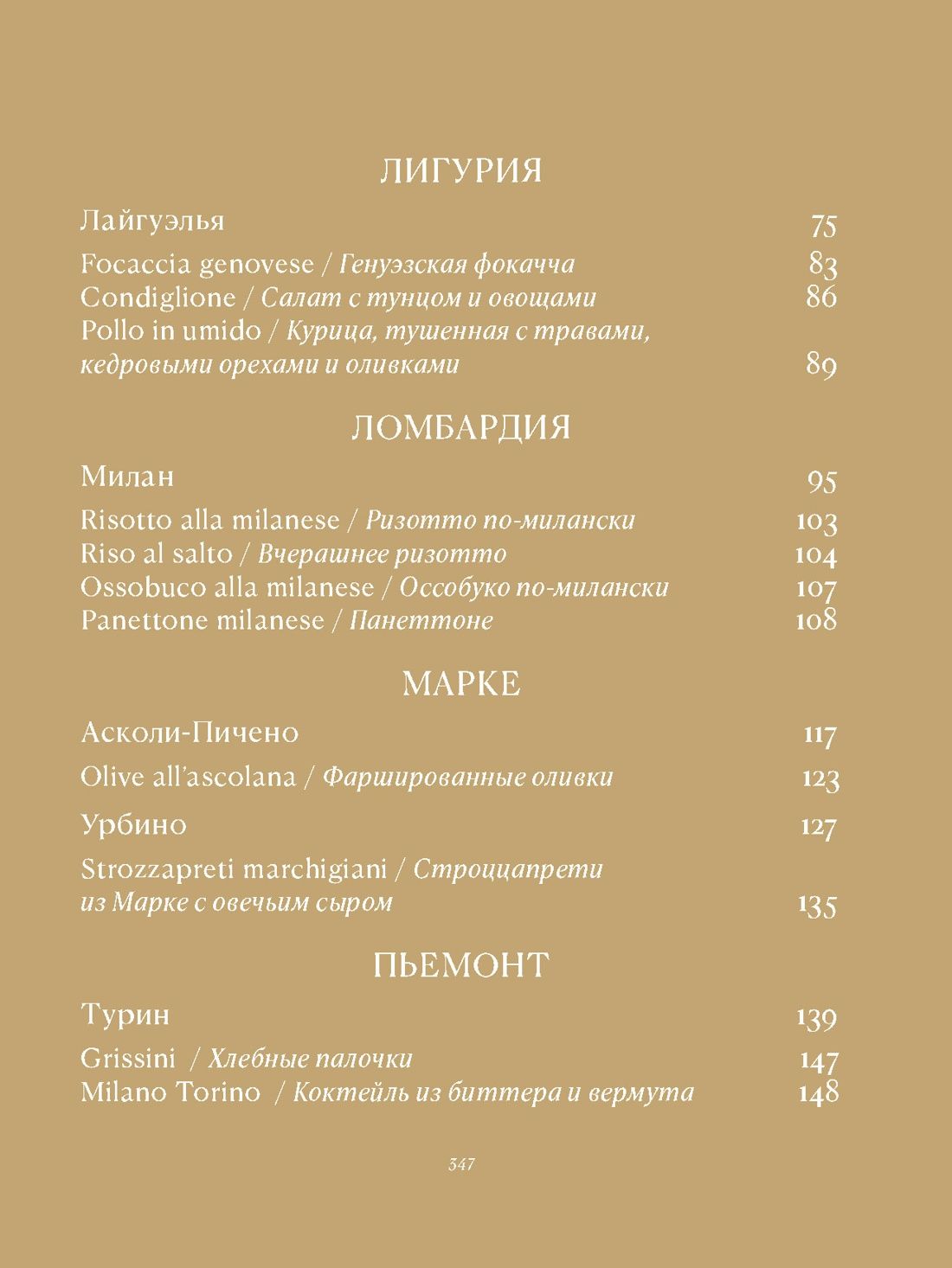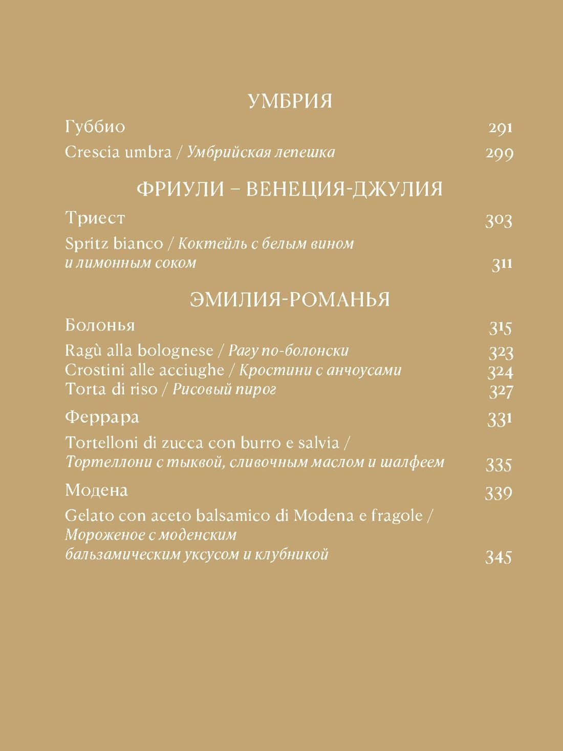 Перед вами книга о многообразии и своеобразии гастрономических традиций Италии. Двадцать пять эссе об итальянских городах и их кулинарных особенностях, дополненных продуманными рецептами, которые легко реализовать на собственной кухне. Показывая Италию сквозь призму региональных кулинарных традиций, автор проводит читателя по всей стране, уделяя внимание не только популярным Риму, Флоренции или Венеции, но и менее известным локациям, и позволяет увидеть Италию глазами путешественника, а не туриста. Благодаря великолепным иллюстрациям книга станет прекрасным подарком тому, кто уже знаком со страной или только мечтает открыть для себя Италию.