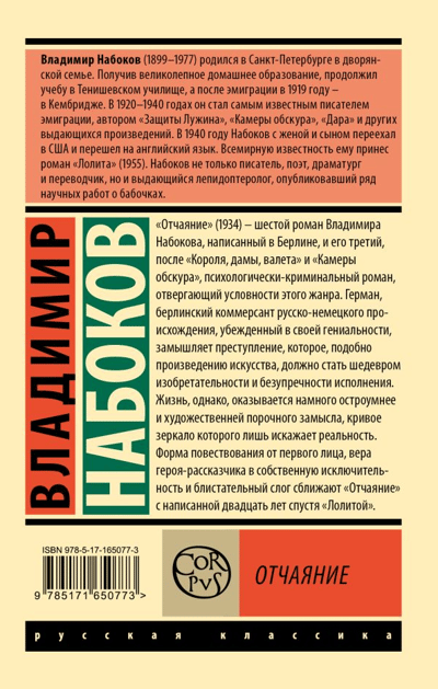 «‎Отчаяние»‎ (1934) — шестой роман Владимира Набокова, написанный в Берлине, и его третий, после «‎Короля, дамы, валета»‎ и «‎Камеры обскура»‎, психологически-криминальный роман, отвергающий условности этого жанра.