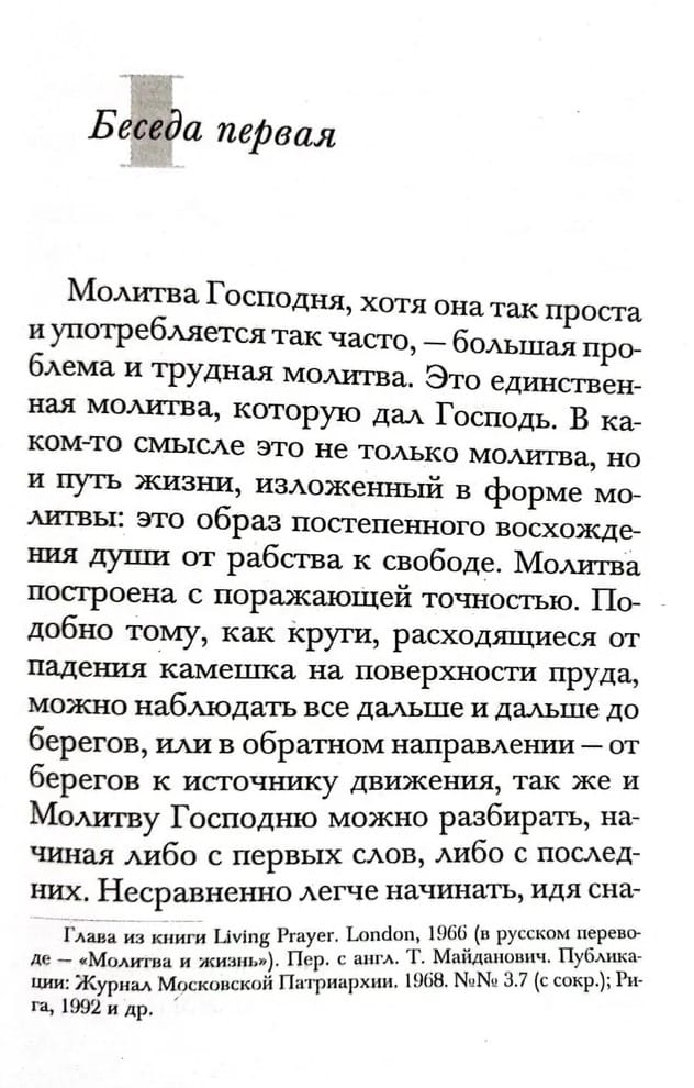 Митрополит Антоний (Блум) (1914-2003) – один из самых ярких проповедников XX века. Его книгой «Отче наш» наше издательство продолжает серию публикаций творений владыки, посвященную 110-летию со дня его рождения и 20-летию его блаженной кончины. В книге собраны размышления владыки разного времени о молитве господней.