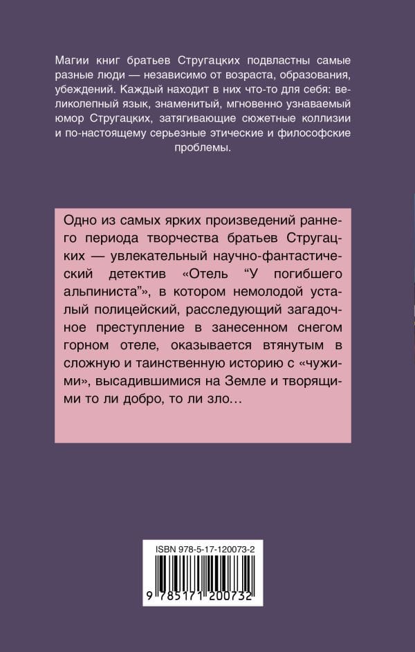 Одно из самых ярких произведений раннего периода творчества братьев Стругацких – увлекательный научно-фантастический детектив «Отель «У погибшего альпиниста», в котором немолодой усталый полицейский, расследующий загадочное преступление в занесенном снегом горном отеле, оказывается втянутым в сложную и таинственную историю с «чужими», высадившимися на Земле и творящими то ли добро, то ли зло…