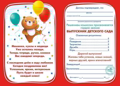 Открытка. Диплом выпускника детского сада