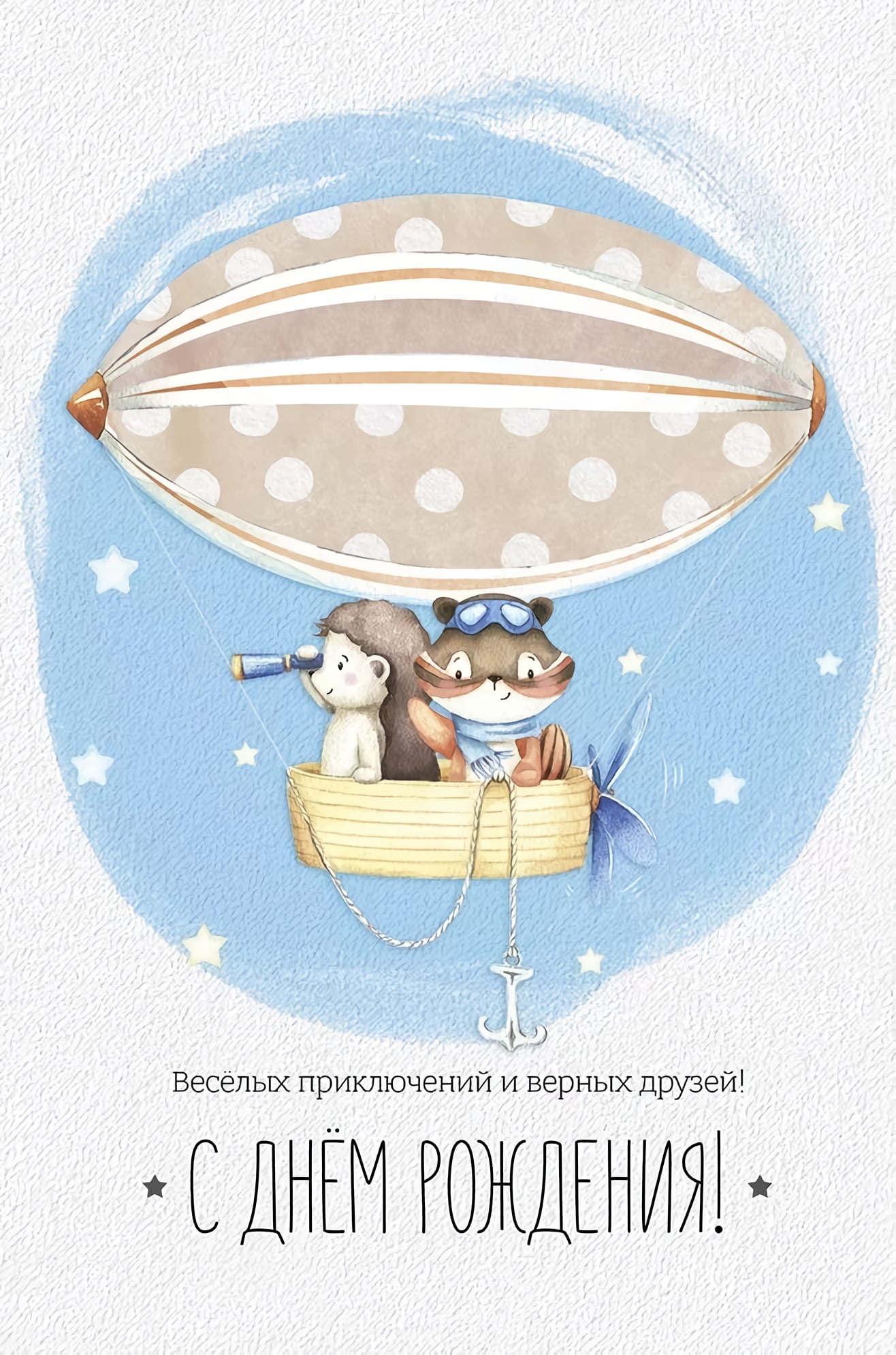 Открытка. С Днем рождения! Веселых приключений и верных друзей!