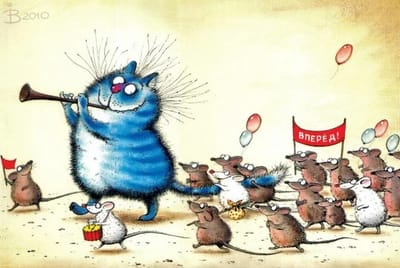 Открытка. Синие коты. Дрессировщик