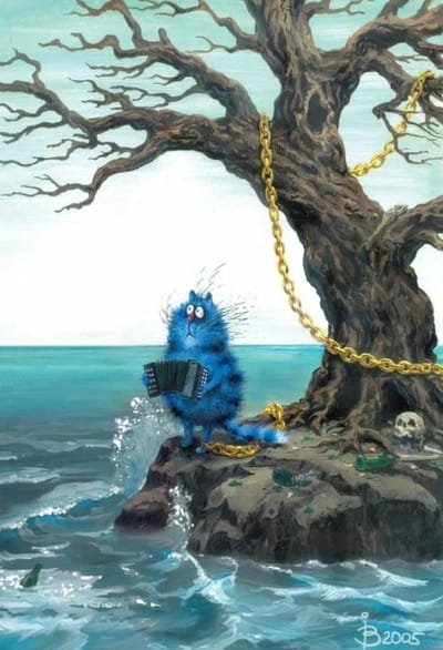 Открытка. Синие коты. Лукоморье