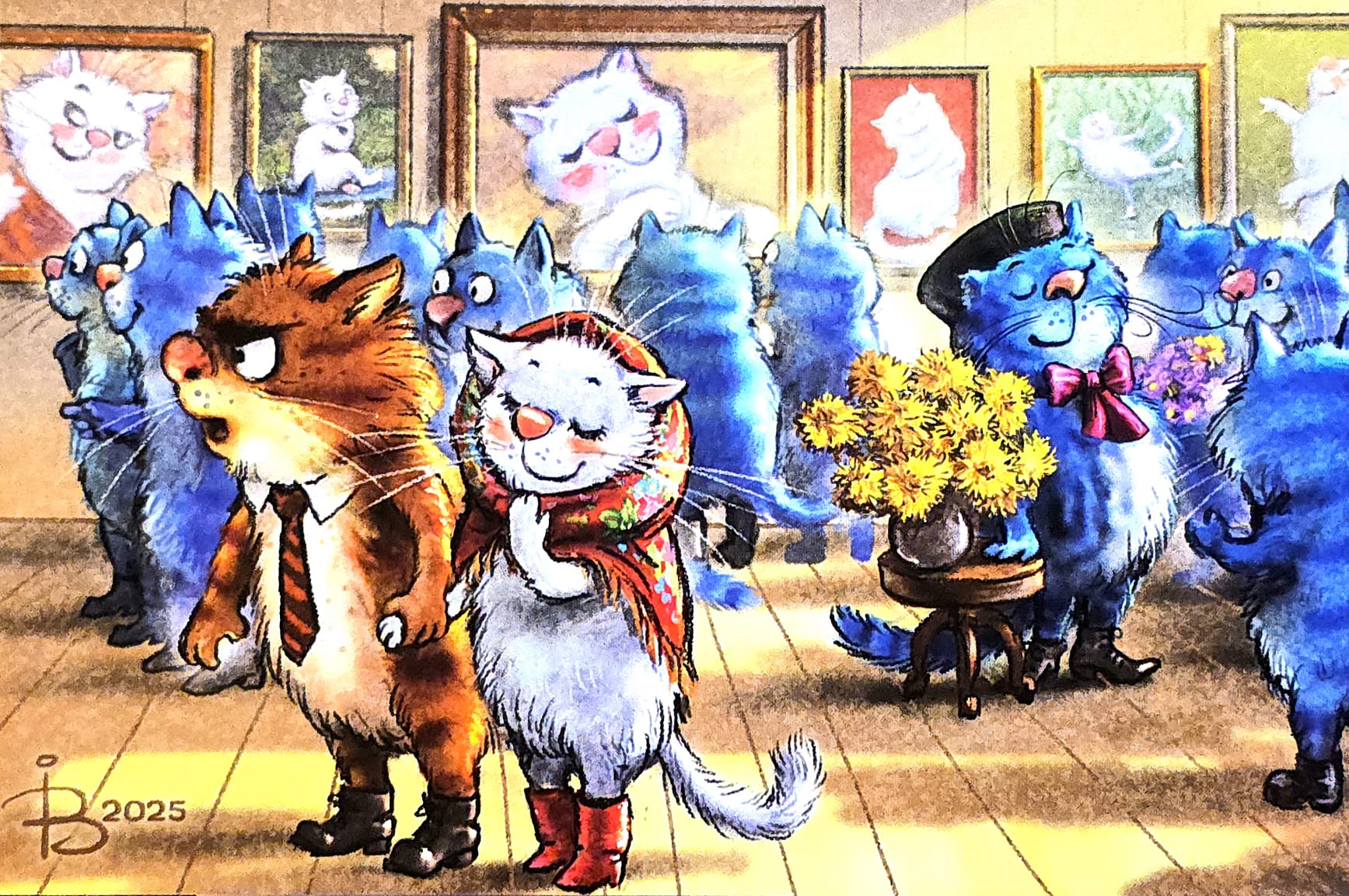 Открытка. Синие коты. Вернисаж