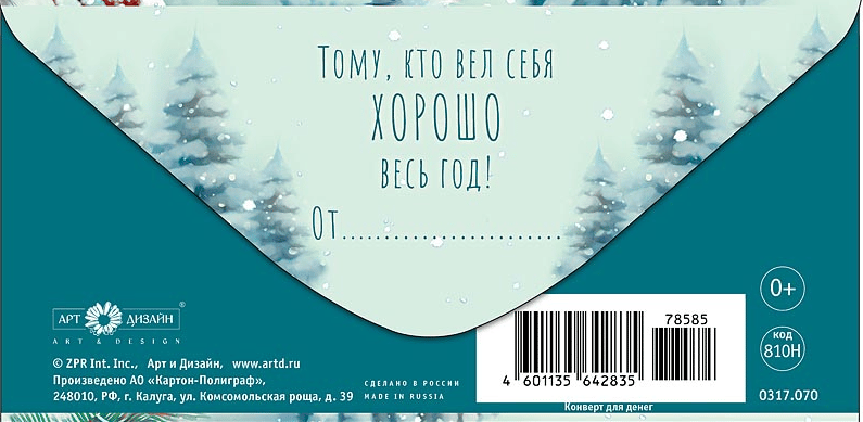 «Тому, кто вел себя хорошо весь год!». Подарочный конверт с текстом на обороте.