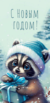 Конверт для денег. С Новым годом! Енотик с подарком