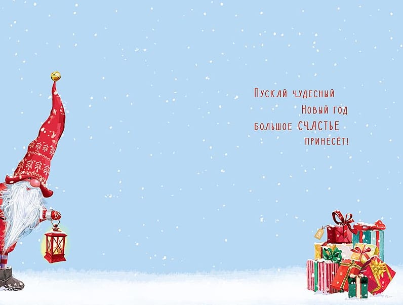 «Пускай чудесный Новый год большое счастье принесет». Поздравительная открытка с текстом на развороте