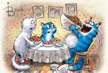 Открытка. Синие коты. Хороший аппетит